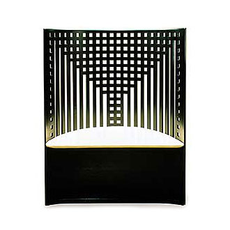 Charles Rennie Mackintosh created the Willow Chair for the Willow Tea Room in Glasgow, Scotland between 1902 and 1904. The Willow Chair was used in the center of the two ground floor saloons at the Willow Tea Rooms, separating the front and back saloon. The Willow Chair's curved back forms the pattern of a willow tree and the lattice is made from a series of short horizontal insets between the continuous verticals slats. The chair was used by the tea room's supervisor. The grate design in the curved back appears to be a stylized tree and a play on the name of the tearoom. According to Pevsner, the architecture of the Willow Team Room reveal Mackintosh as the European counterpart to Frank Lloyd Wright.